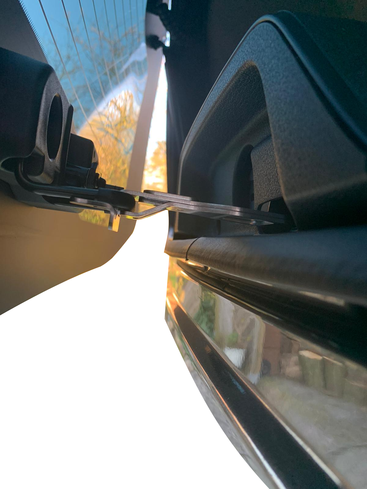 - Der Aufhalter wird einfach in den Schließbügel der Heckscheibe eingehängt